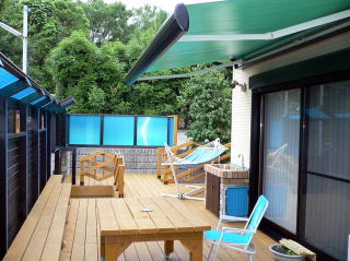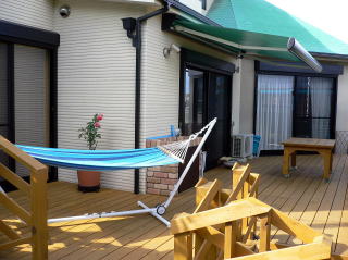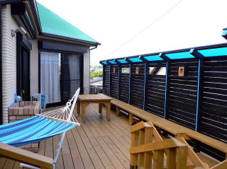 ご自宅を増改築し、庭を全面ウッドデッキにされました。 住宅地の一角が森林浴を感じさせるような趣となっています。 施工者の所々の工夫が庭にいる楽しさを呼んで、お客様がほっとした一時を過ごされています。